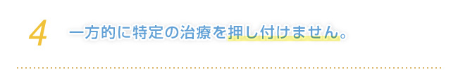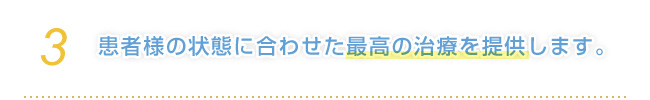 患者さまの事を第一に考え、どのような症状にも真向からチャレンジし、患者様の求めている結果を実現できるよう、懸命に邁進してまいります。